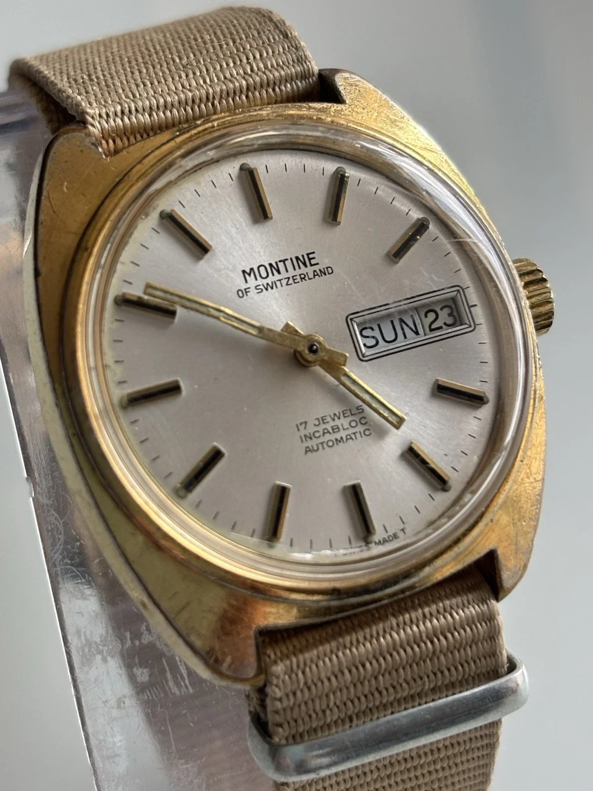 Montine of Switzerland Men's Vintage Gold Plate Automatic Watch 17 Jewels