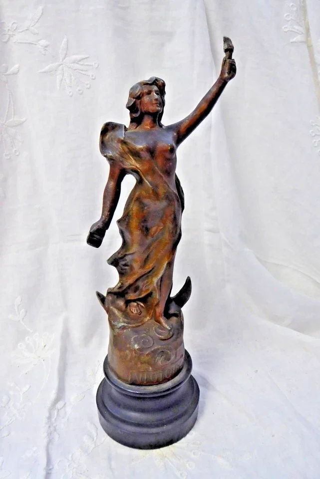 Pair of Antique French Spelter Sculpture Gloire & Victoire Signed Rucho Pse